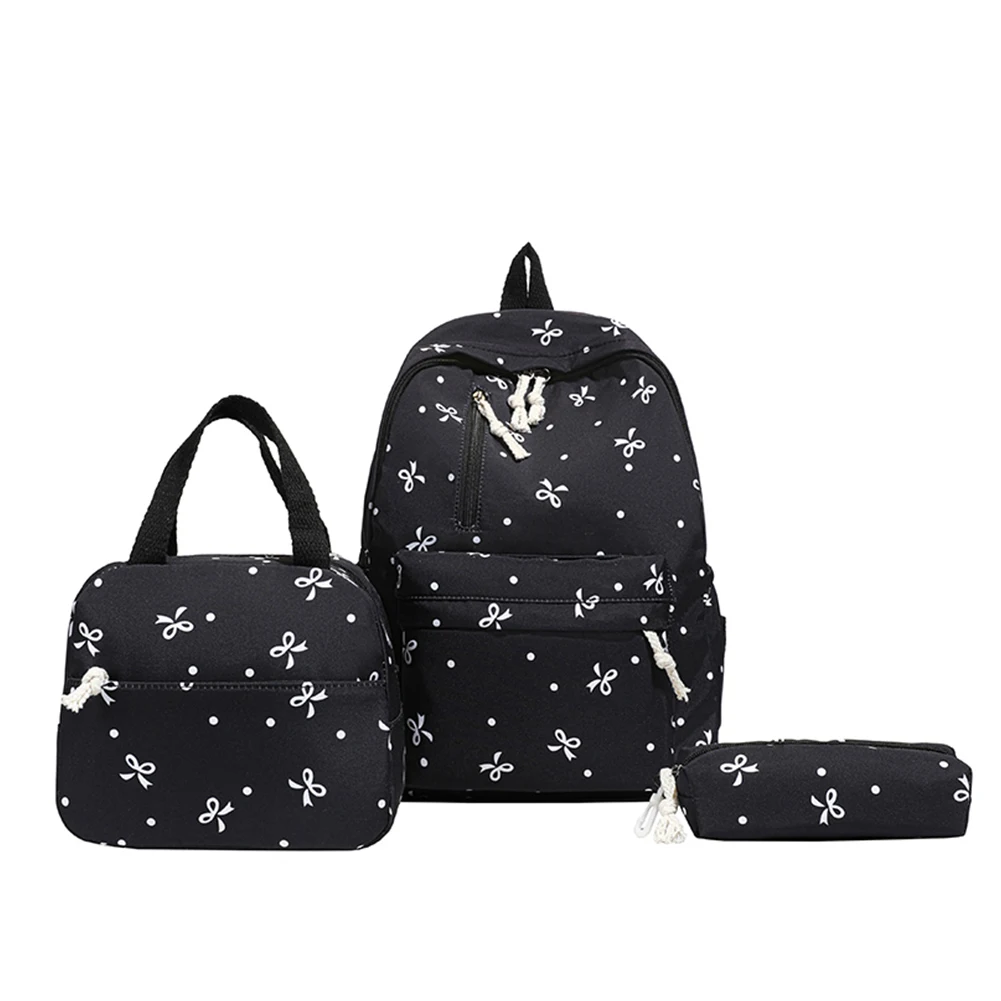 3Pcs/Set Bow Print Aesthetic Daypack with Handbag and Pencil Case Student Rucksack for Girl Women Travel