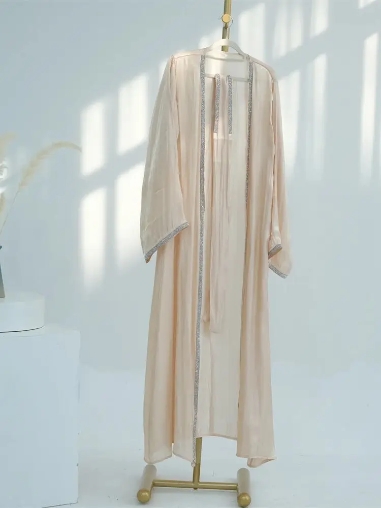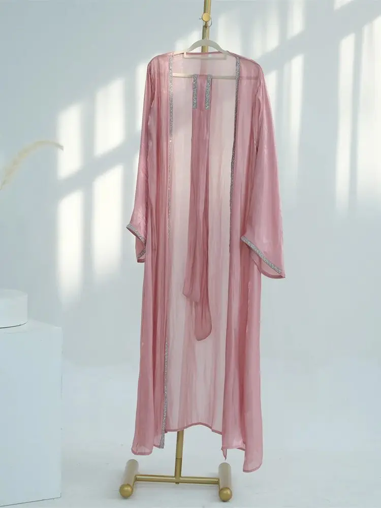 Eid Dubai Satin White Organza Shimmer Open Abaya 2024 Fashion Muslim for Women Kaftan Modest Luxury Kimono Coat Islam Clothing