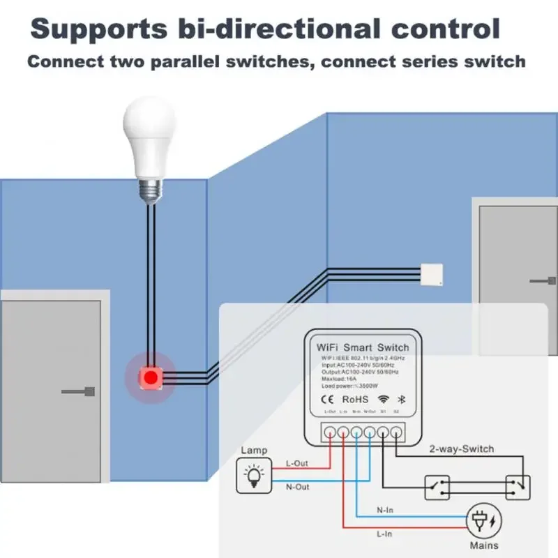 Such as refitting a desk lamp into a smart desk lamp, and mobile phone can control the switch of the light. To turn the downlight into a smart downlight, you only need to connect a smart switch module to the switch, and then Alexa/Google assistant can control the light switch.